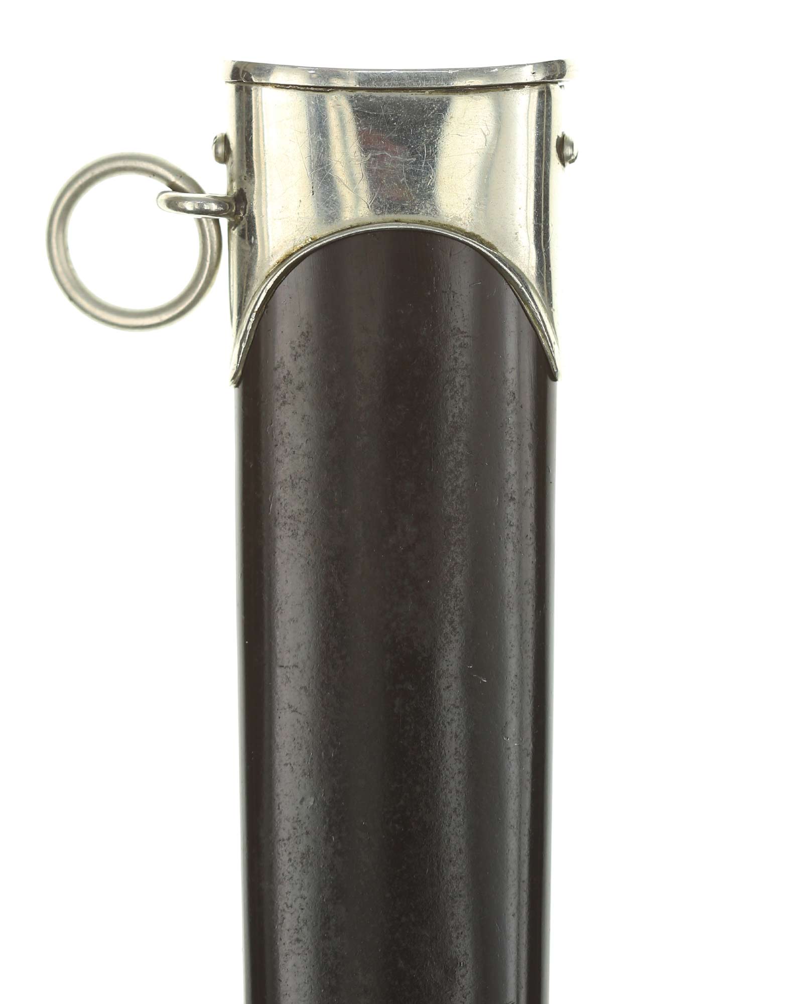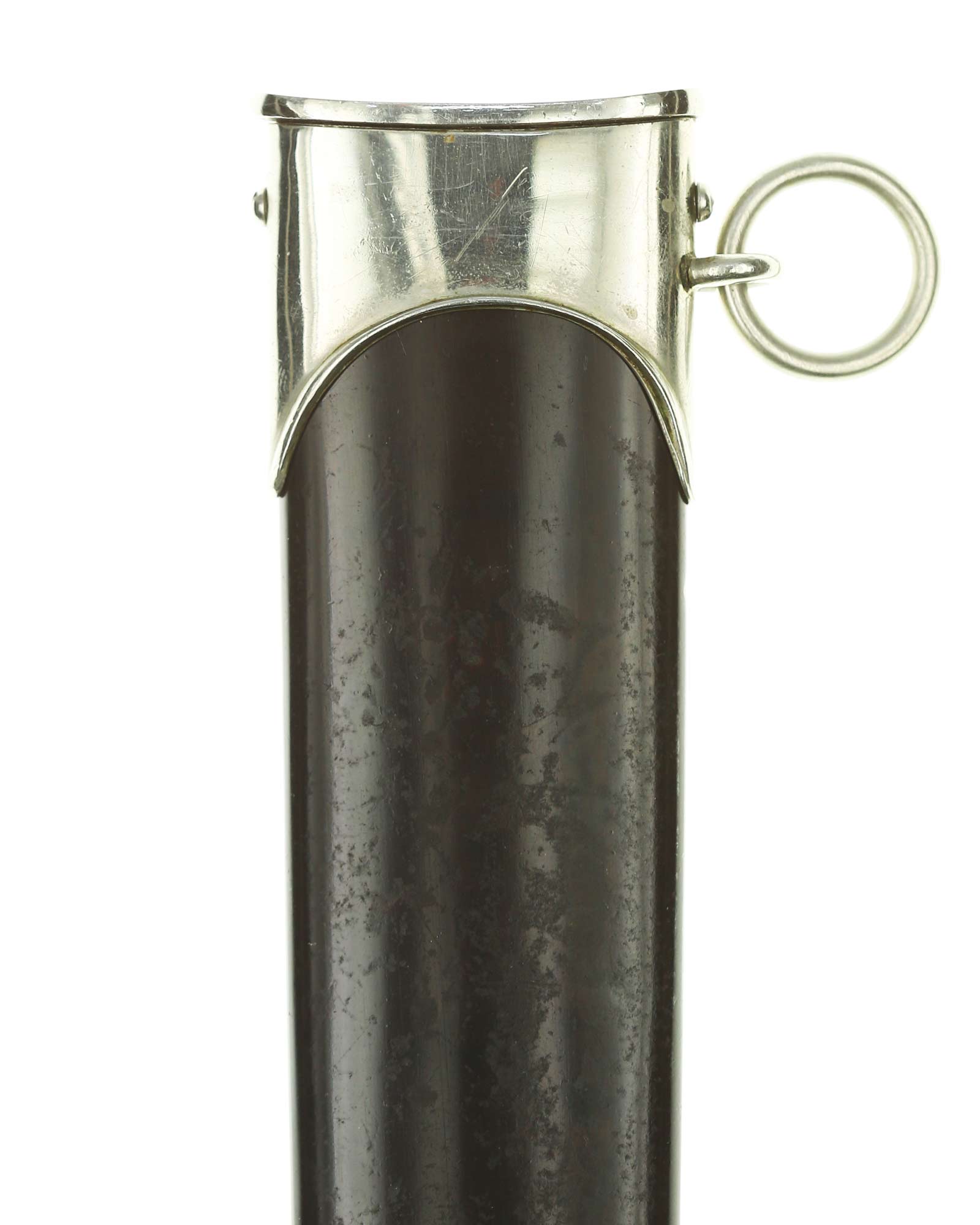 Ножны: Ножны металлические. Черные вороненные ножны с посеребренным прибором и одним подвижным кольцом для крепления к подвесу.