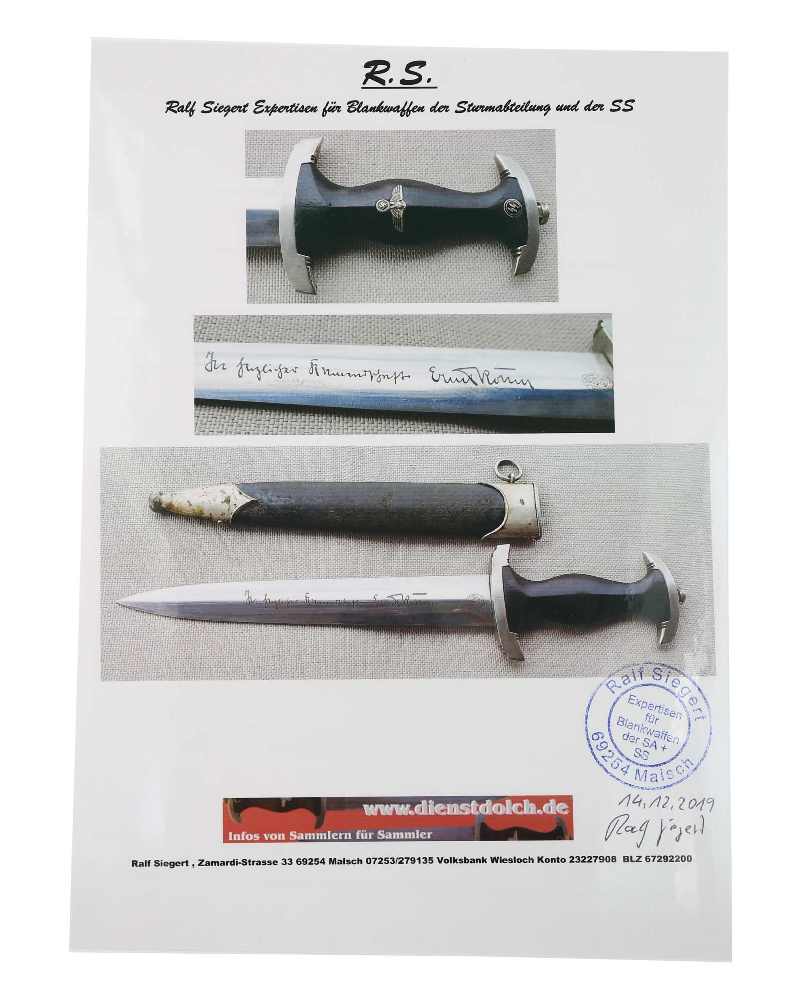 Парадный кинжал СС обр. 1933 года с дарственной подписью Эрнста Рема - Карл Айкхорн Золинген