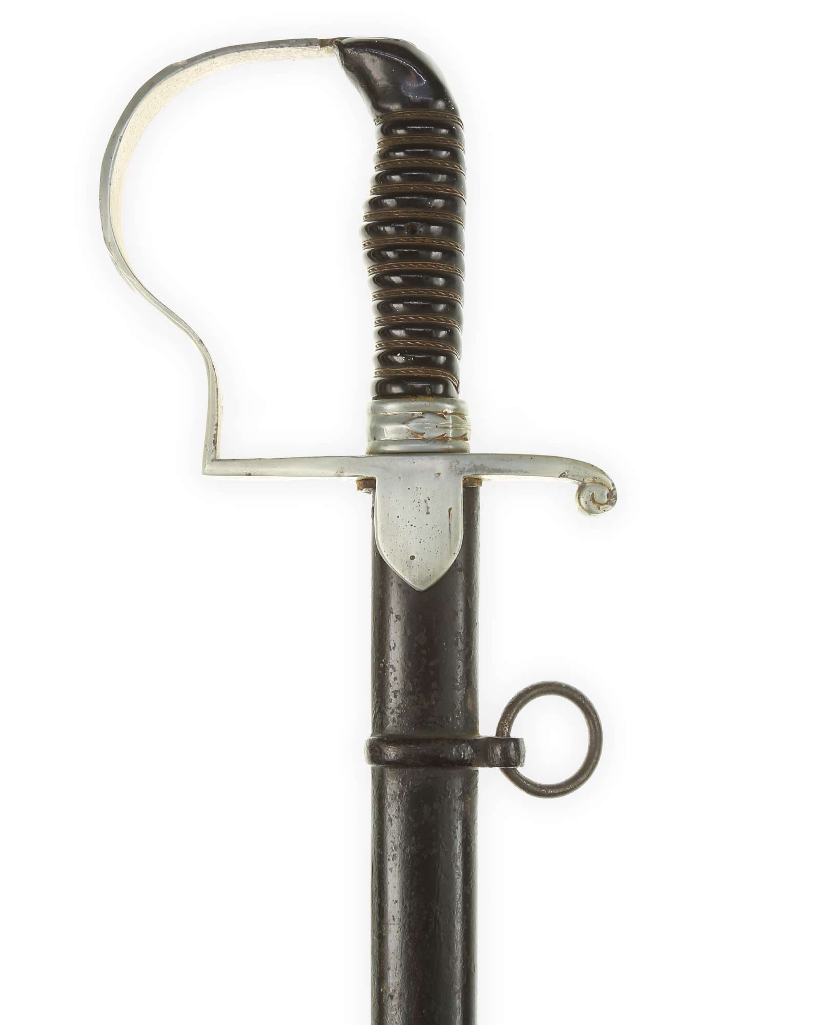 Гарда металлическая, переходящей под прямым углом в крестовину рукояти, дальний конец которой загнут вниз по направлению к обуху клинка. В центре крестовины располагаются два щитика. Рукоять пластиковая, с горизонтальными желобками, перевитыми стальной проволокой. Спинка рукояти металлическая, плавно переходящая в округлую головку. Ножны стальные, с одной обоймицей с кольцом, скобой для подвеса и башмаком. Клинок стальной, незначительно изогнутый, однолезвийный, с одним долом с обеих сторон, никелированный. Парадная сабля изготовленная фирмой Карл Айкхорн Золинген.