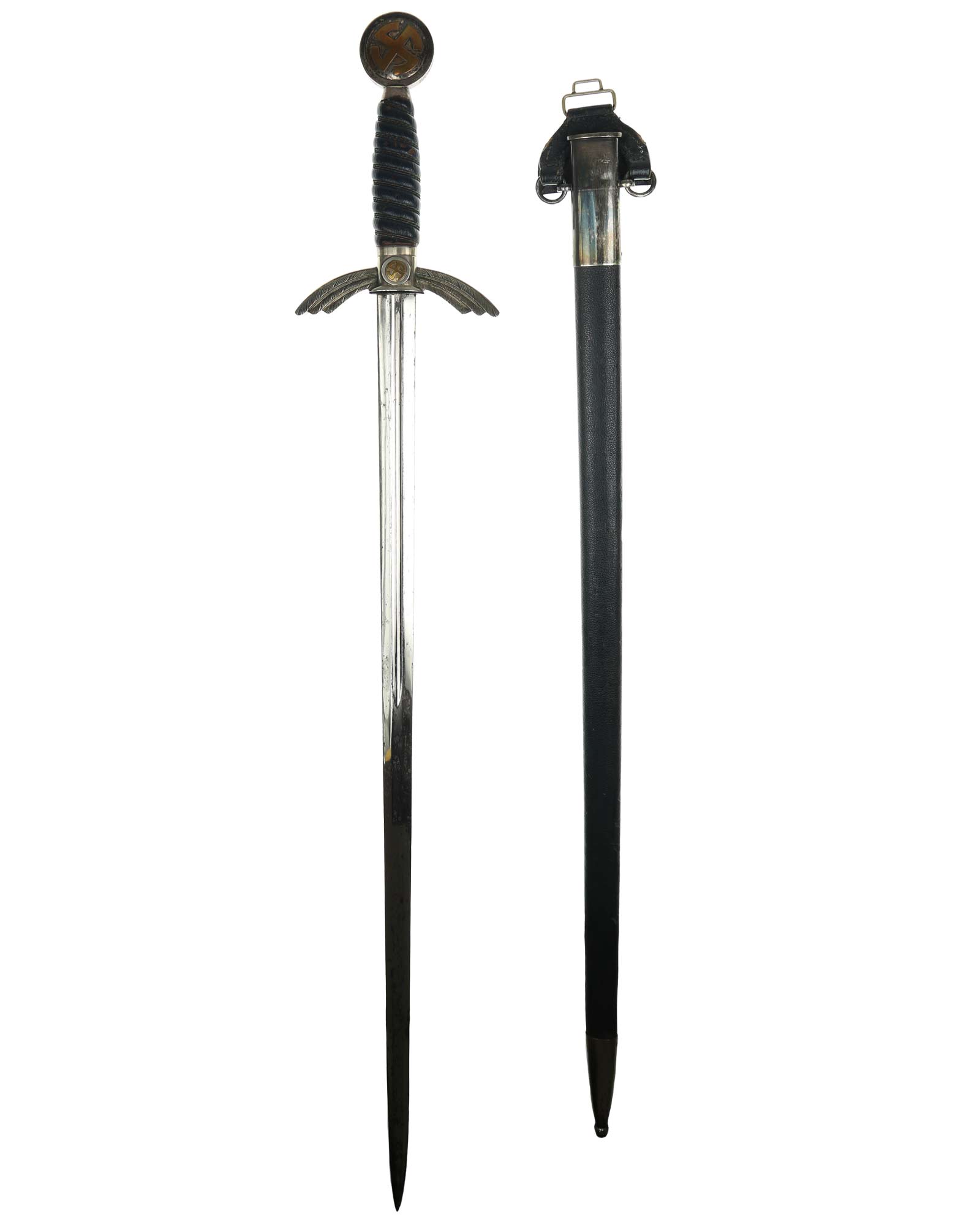 Данный парадный меч был произведен в период 1934-42 гг. Производитель фирма Штеккер SMF Золинген (SMF Solingen). Длина в ножнах 93,5 см.