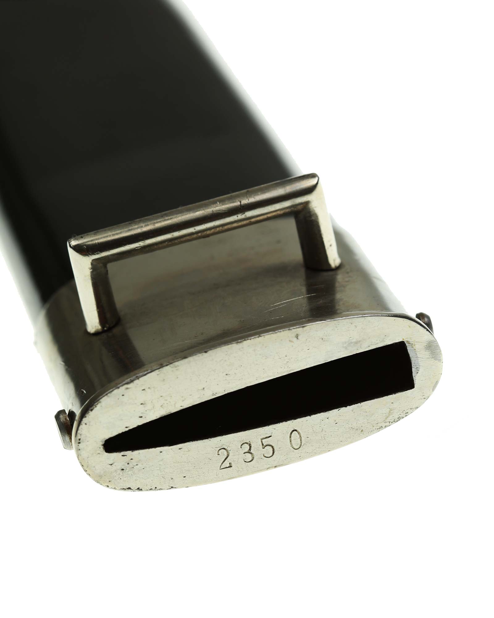 Ножны: Ножны металлические, крашеные в черный цвет. Прибор ножен из белого металла, состоит из устья и наконечника с маленькой пуговкой. На устье с обратной стороны имеется прямоугольная скоба, через которую пропускается ремень для крепления к портупее. На срезе устья ножен нанесен тот же номер «2350».
