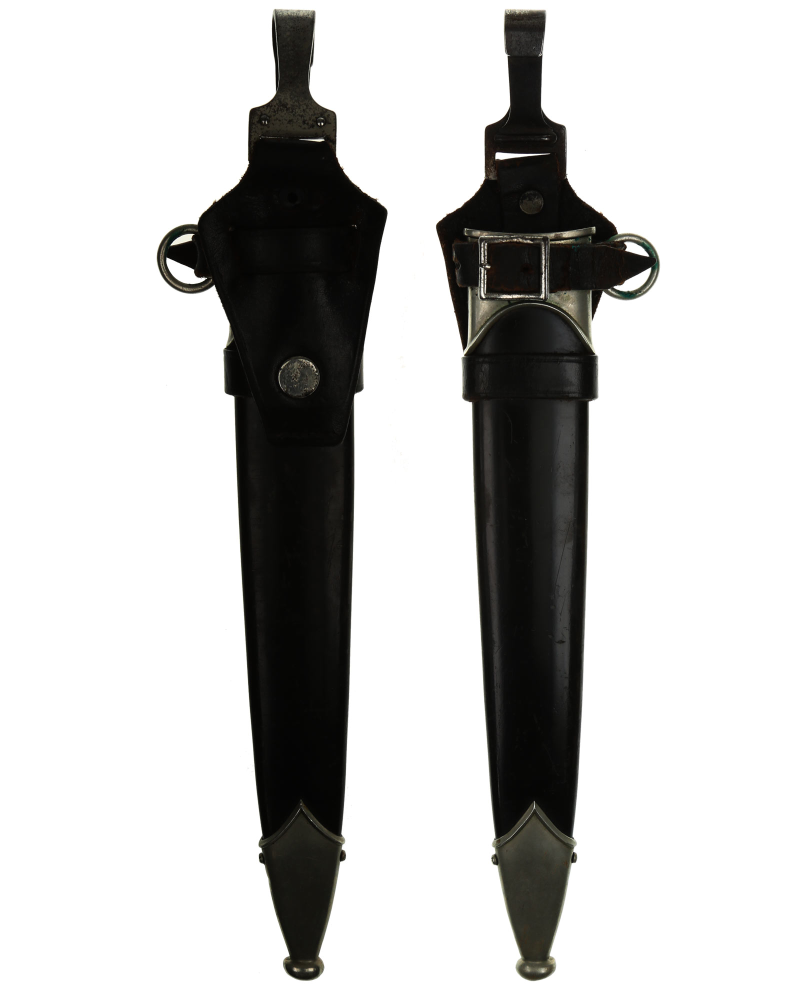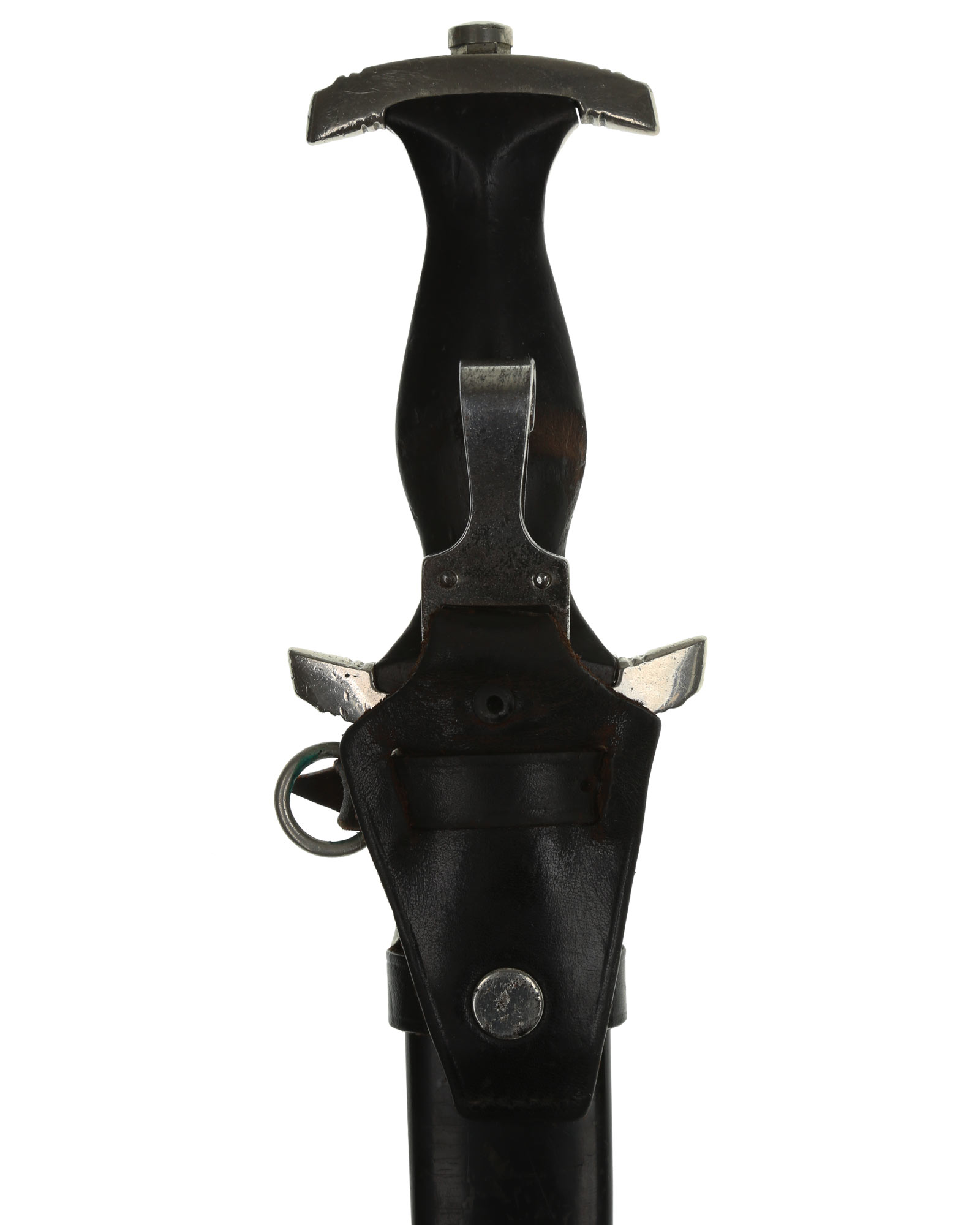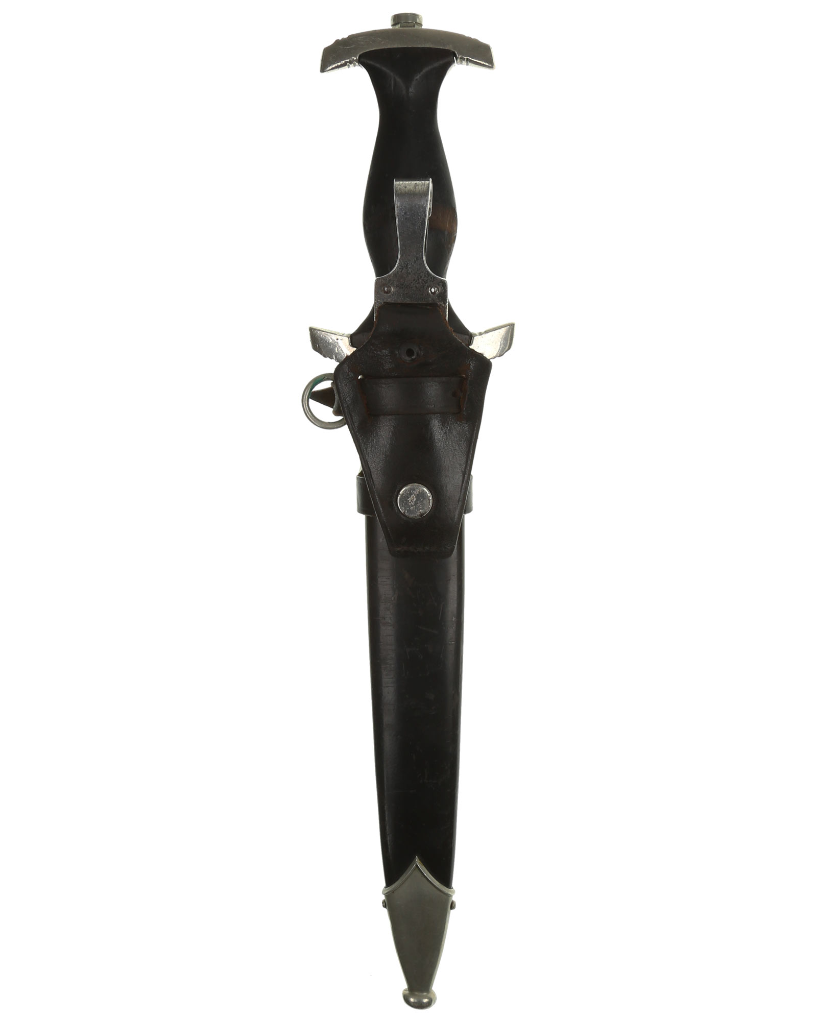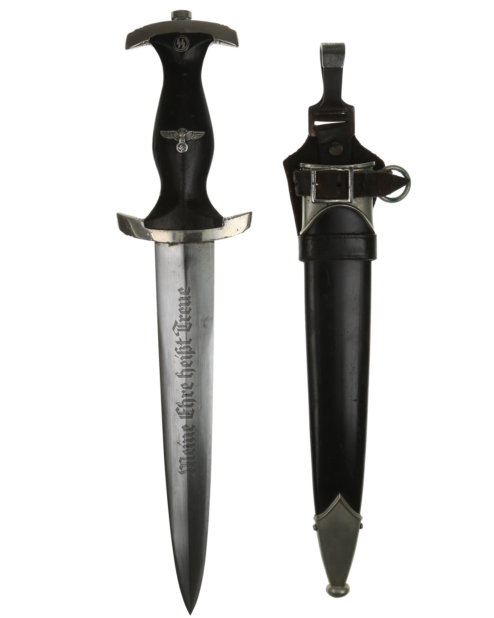 Клинок: Клинок кинжала прямой, стальной, двулезвийный, кинжального типа, с выраженным центральным ребром. На одной стороне клинка методом травления нанесен девиз СС «Meine Ehre heisst Treue» (Моя честь называется верностью). Клинок на оборотной стороне у основания стоит клеймо производителя Готтлиб Хаммесфар Золинген (Gottlieb Hammesfahr Solingen).