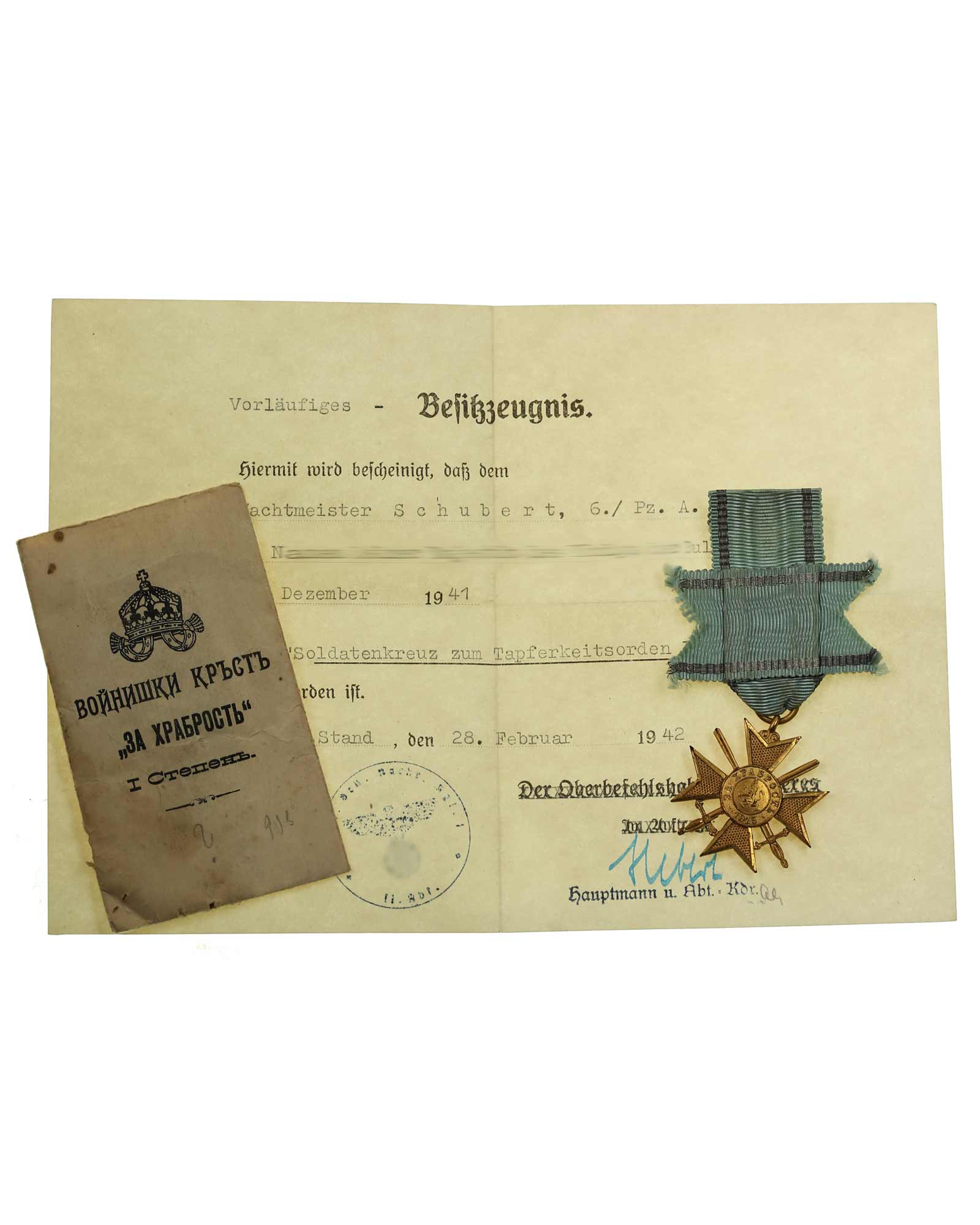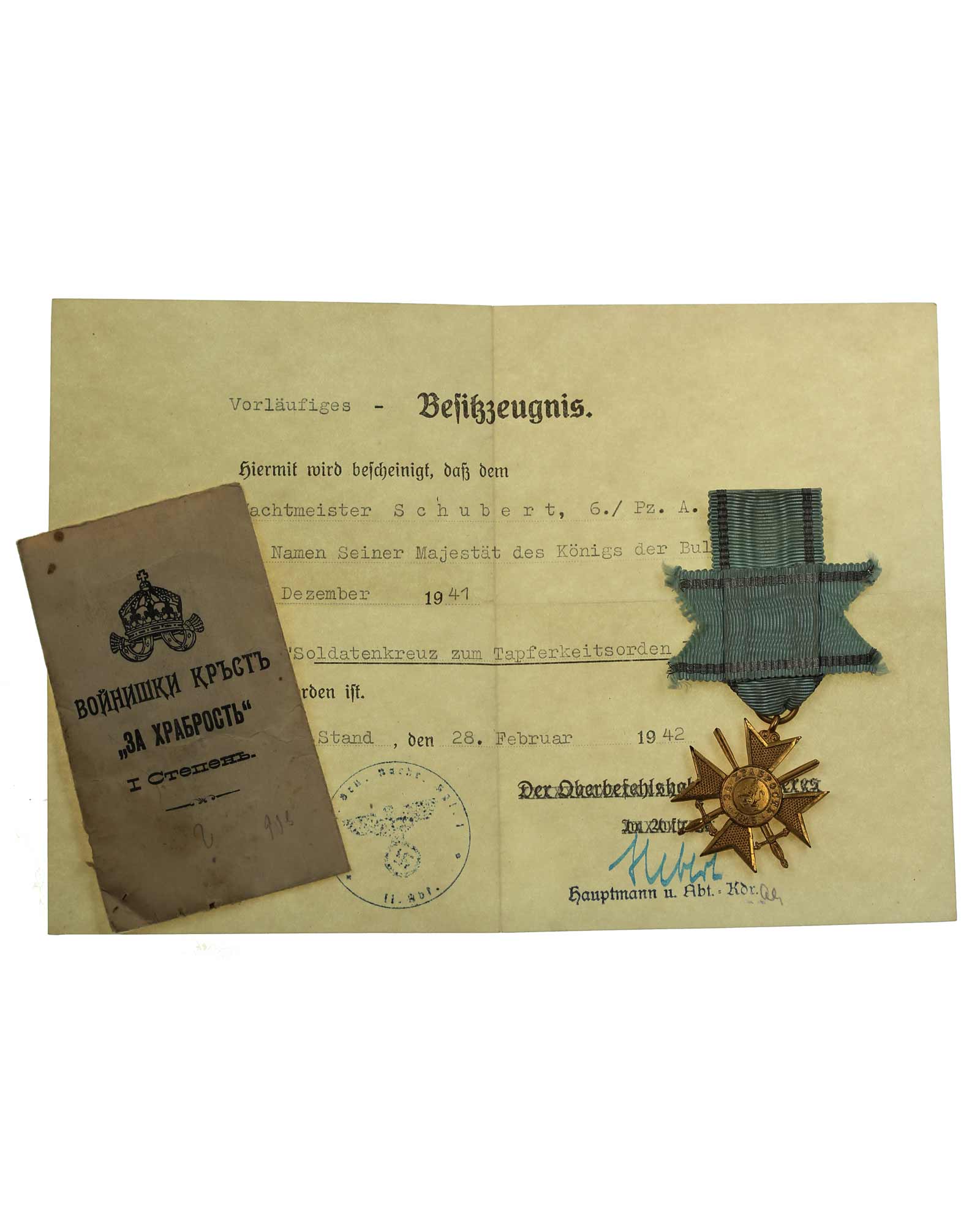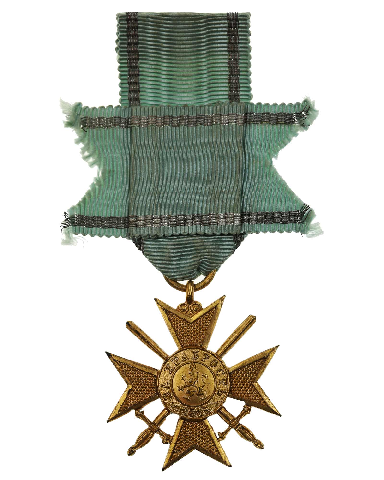 Медаль «За храбрость» I-я степень. Существуют четыре эмиссии. Вручался болгарским и иностранным генералам, также как и руководителям других стран. Всего награждено 32 человека, от императора Александра II до маршала Толбухина. Общий вес 14 г. Размер: 34,32 x 33,60 мм.