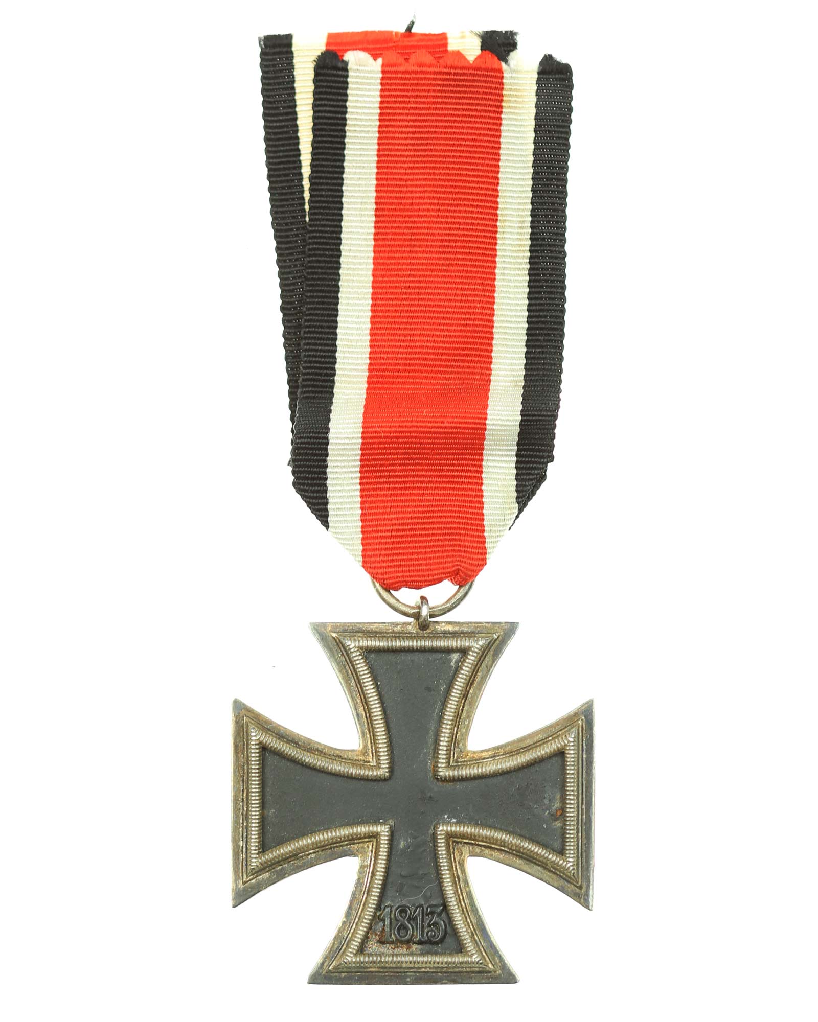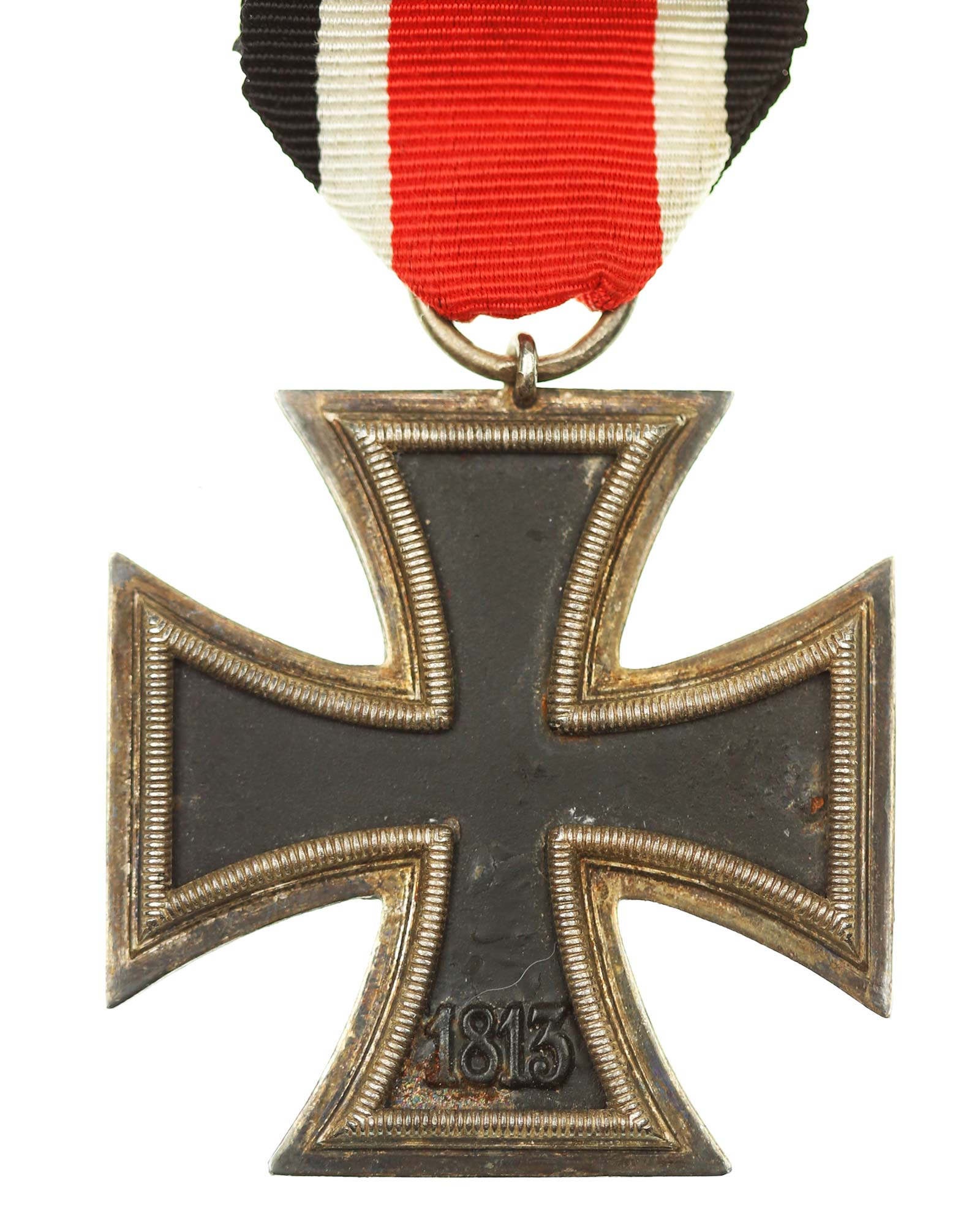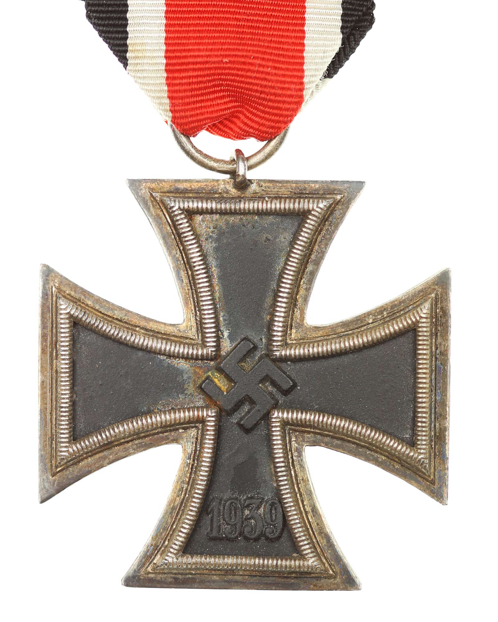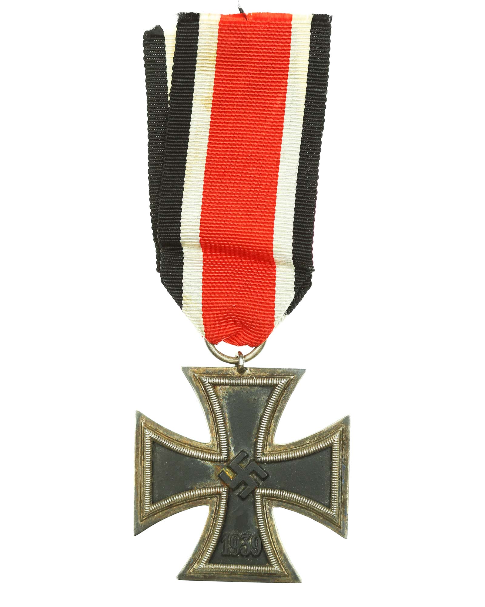 - Железный крест 1939 г. 2-й степени с черненым железным сердечником на ленте (черный | белый | красный | белый | черный). Без клейма производителя. Общий вес 20г. Размеры: 44,16 х 44,71 мм.