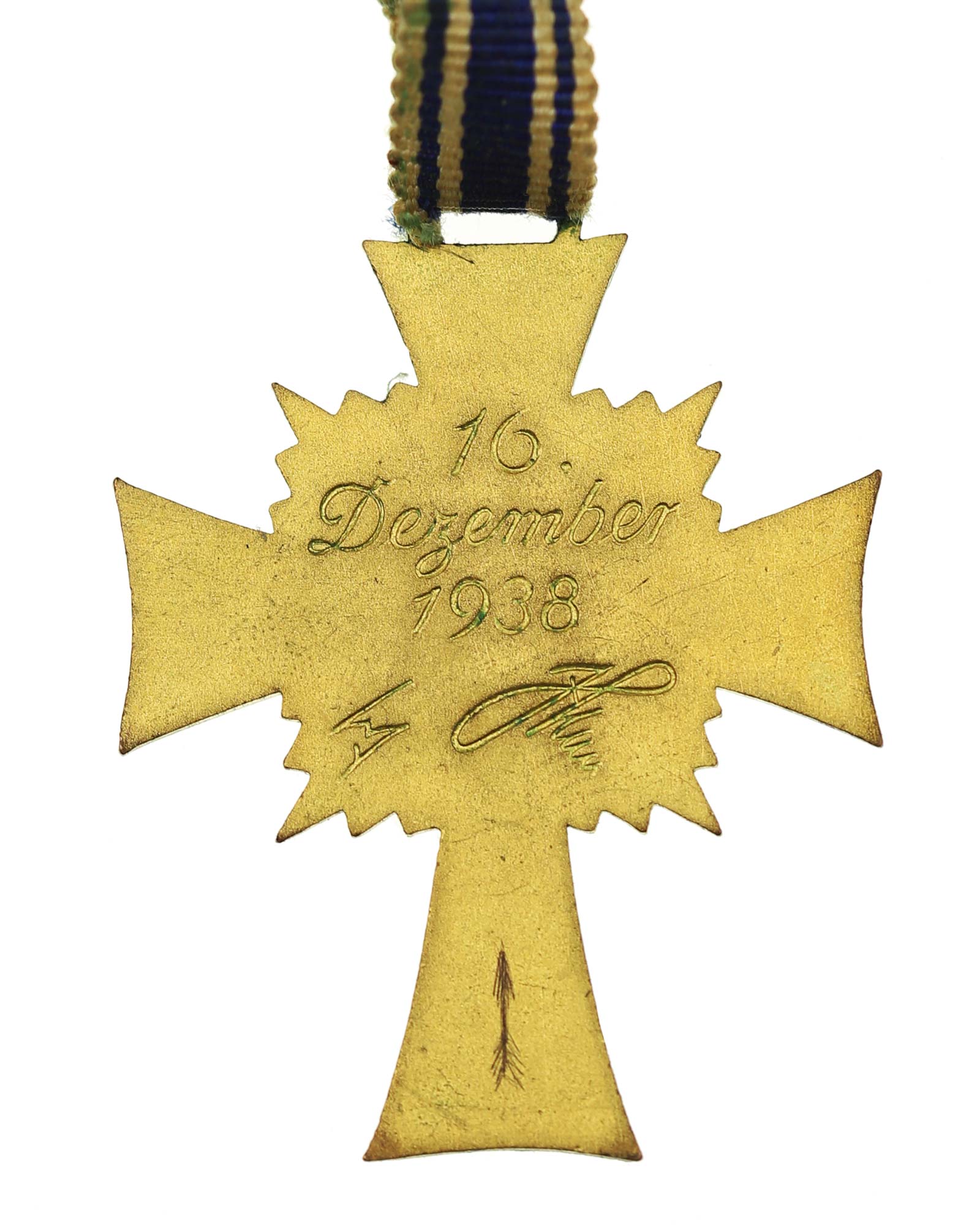 Почётный крест немецкой матери (нем. Ehrenkreuz der deutschen Mutter) — награда Третьего рейха, учреждённая Адольфом Гитлером 16 декабря 1938 года. Крест немецкой матери в золоте, на шелковой ленточке. Томпак, золочение, эмаль. Общий вес 14 г. Размер: 35,85 x 45,89 мм.