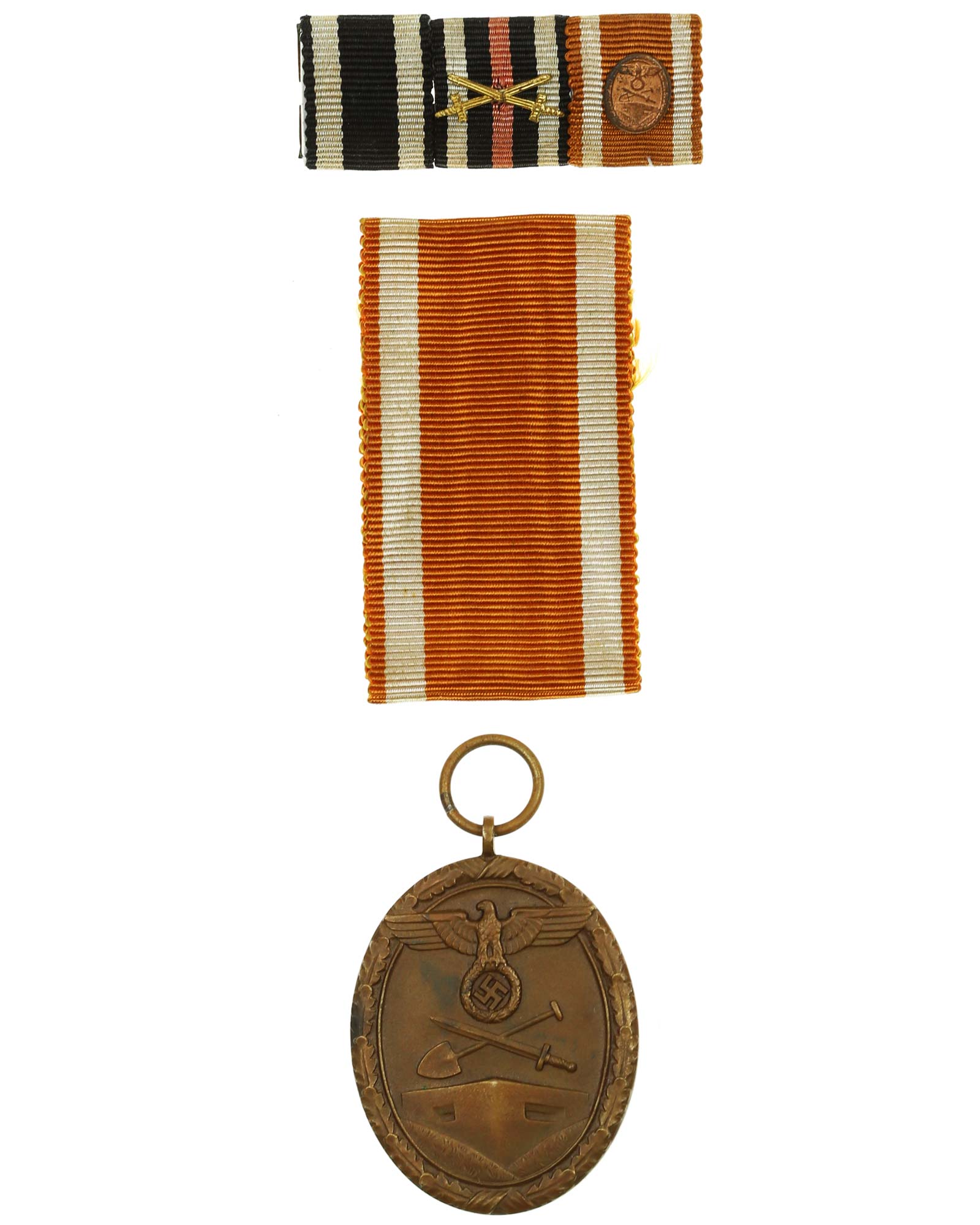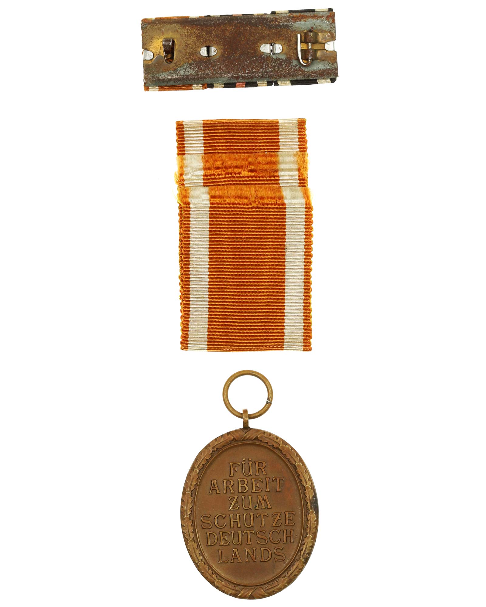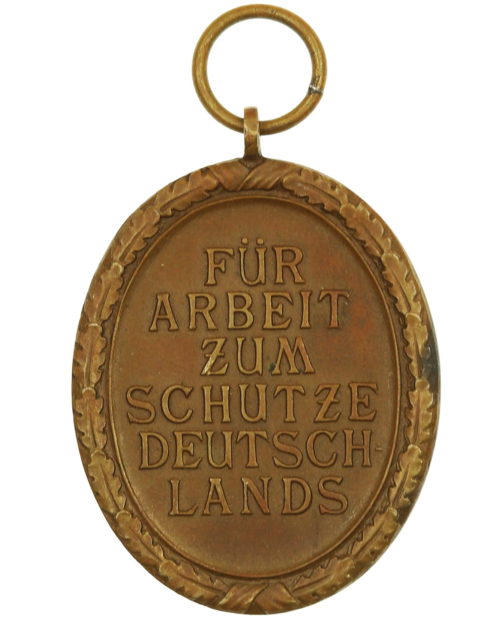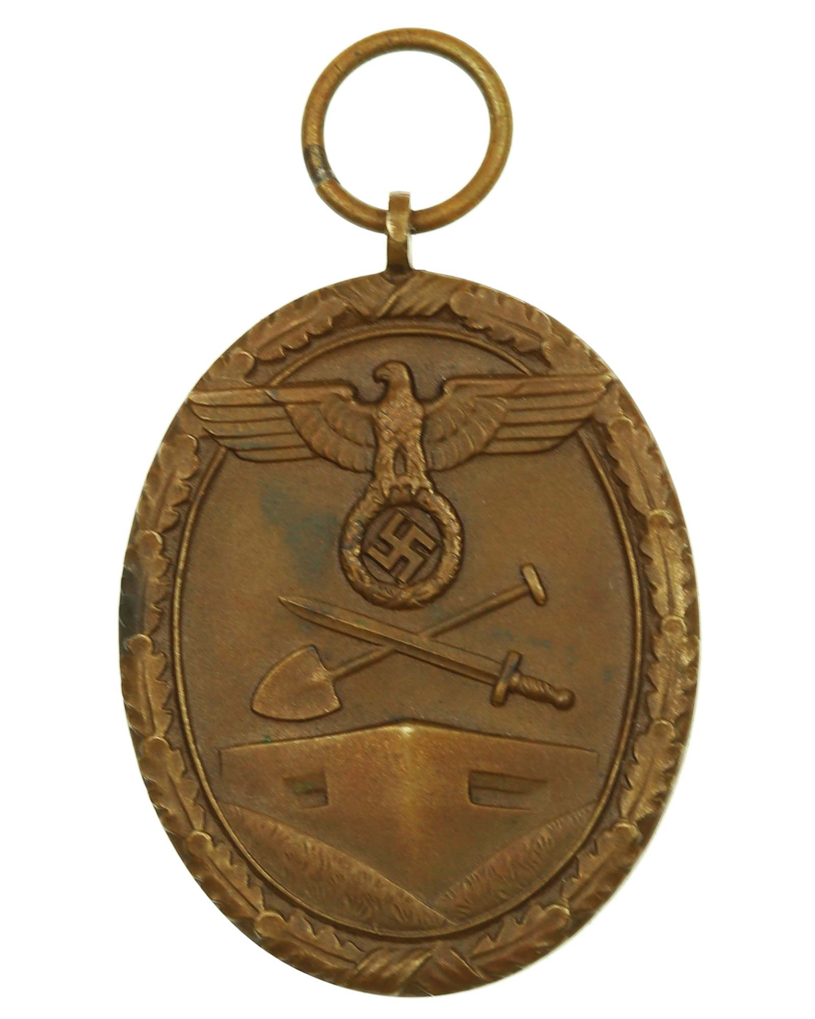 Медаль «За сооружение Атлантического вала» — Deutsches Schutzwall-Ehrenzeichen. Родная лента. Медаль была Учрежден 2 августа 1939 Адольфом Гитлером. Общий вес 27 г. Размер: 32,87 x 45,34 мм. Очень хорошее состояние.