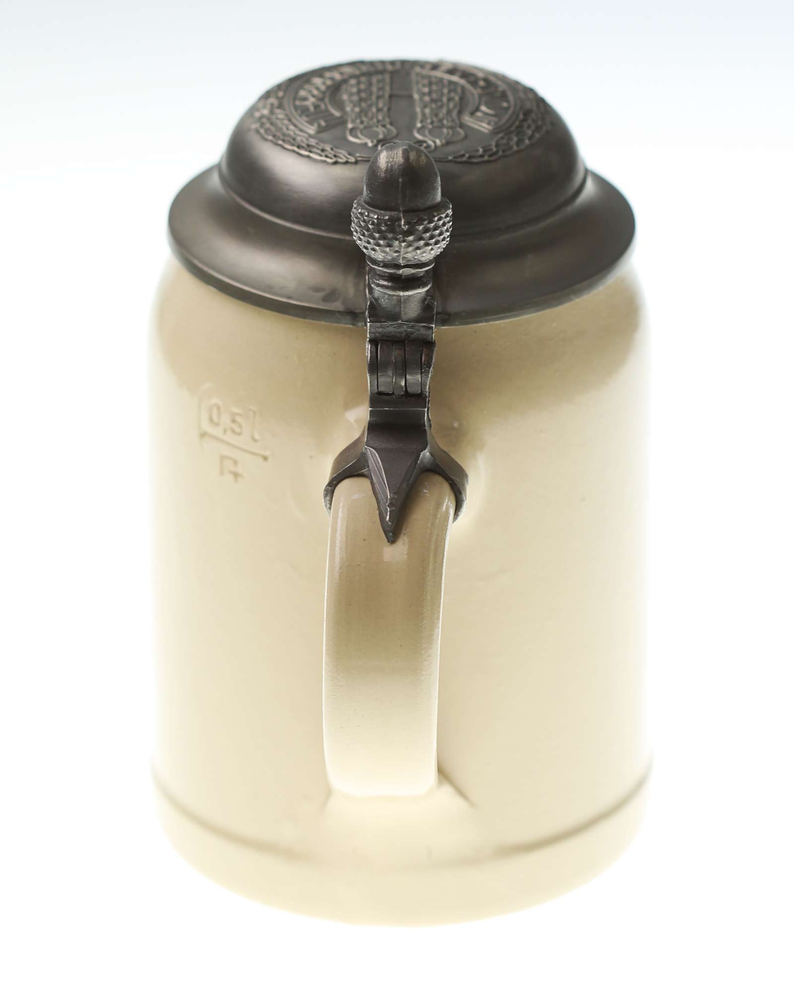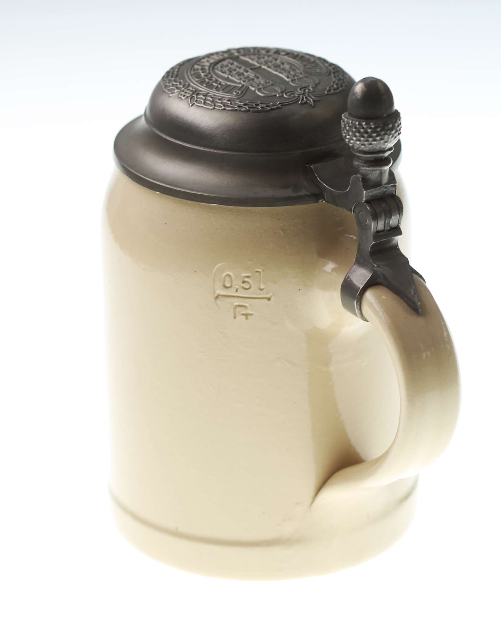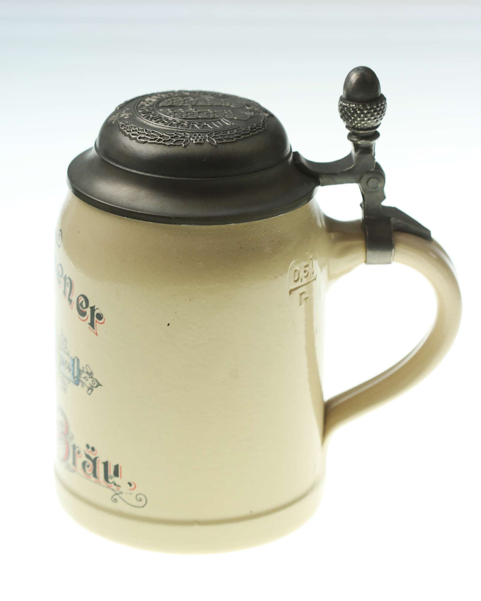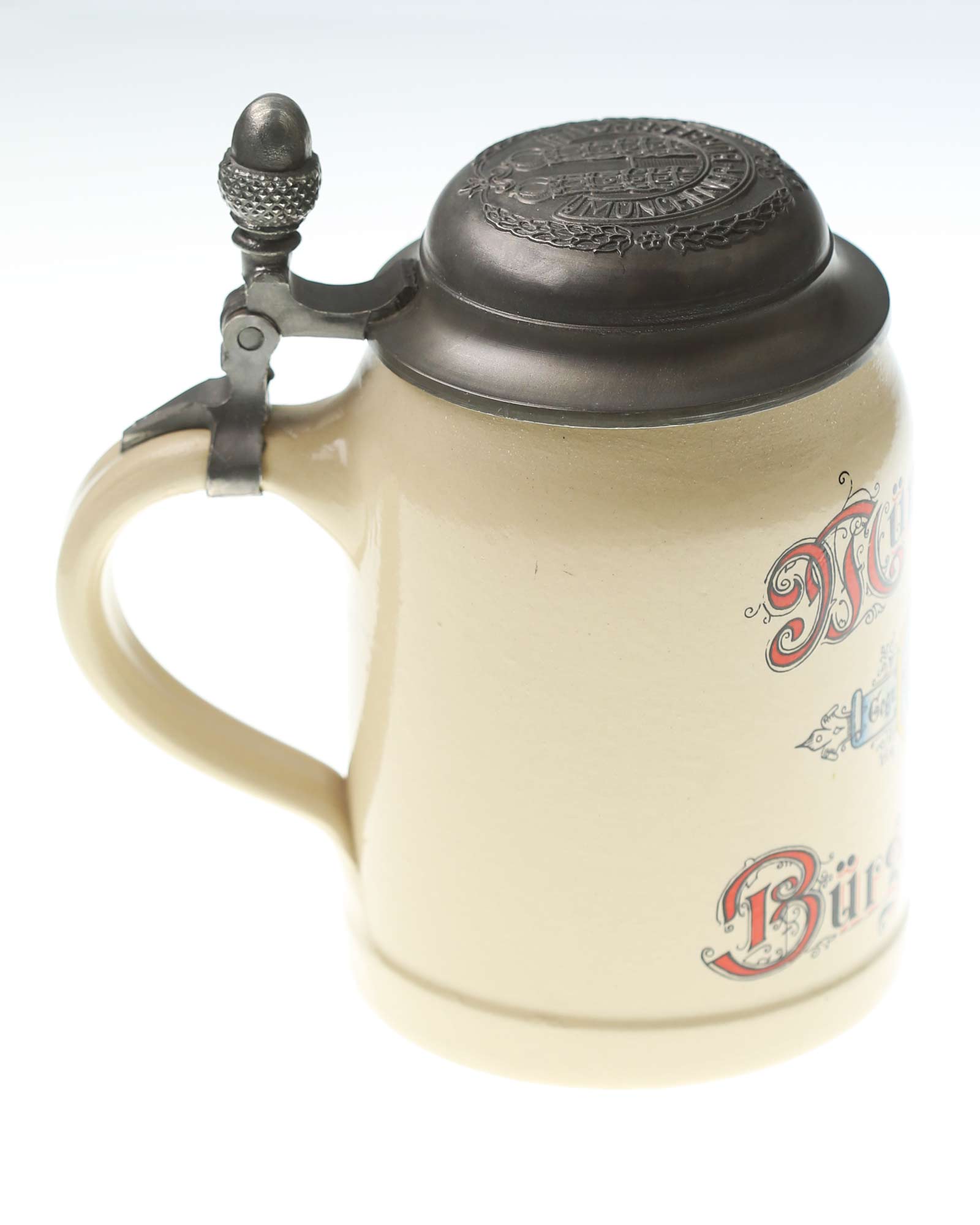 Кружка Münchener Bürgerbräu с оловянной крышкой, клеймо производителя: F. Glas Мюнхен.