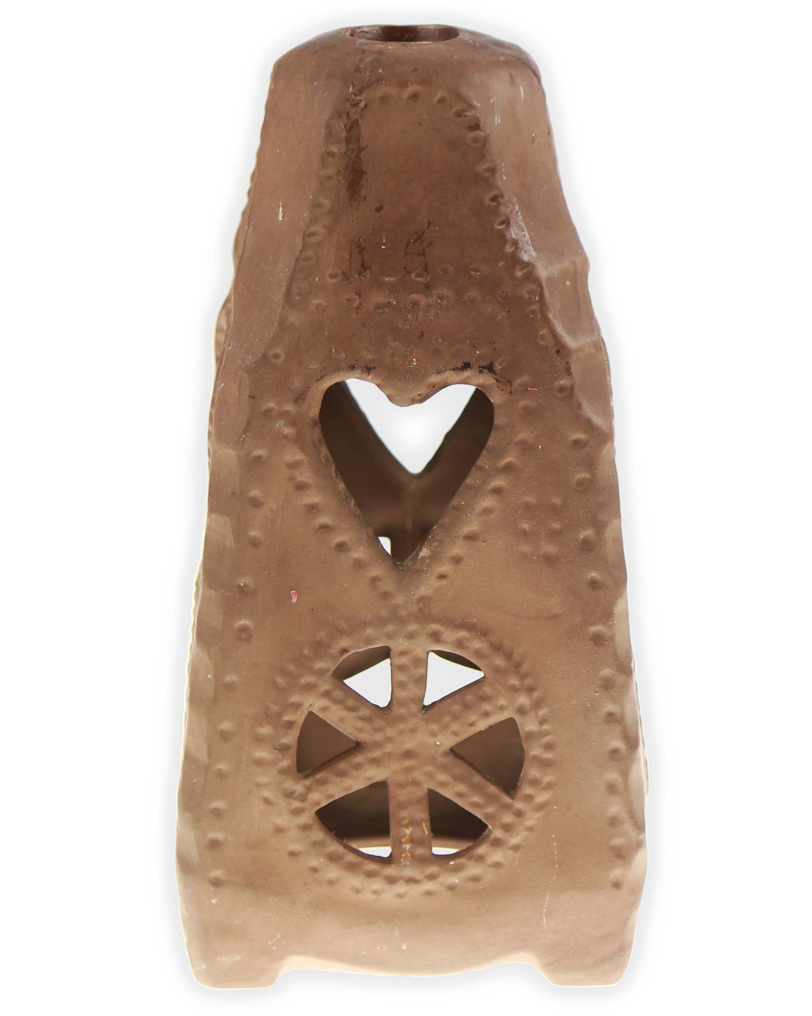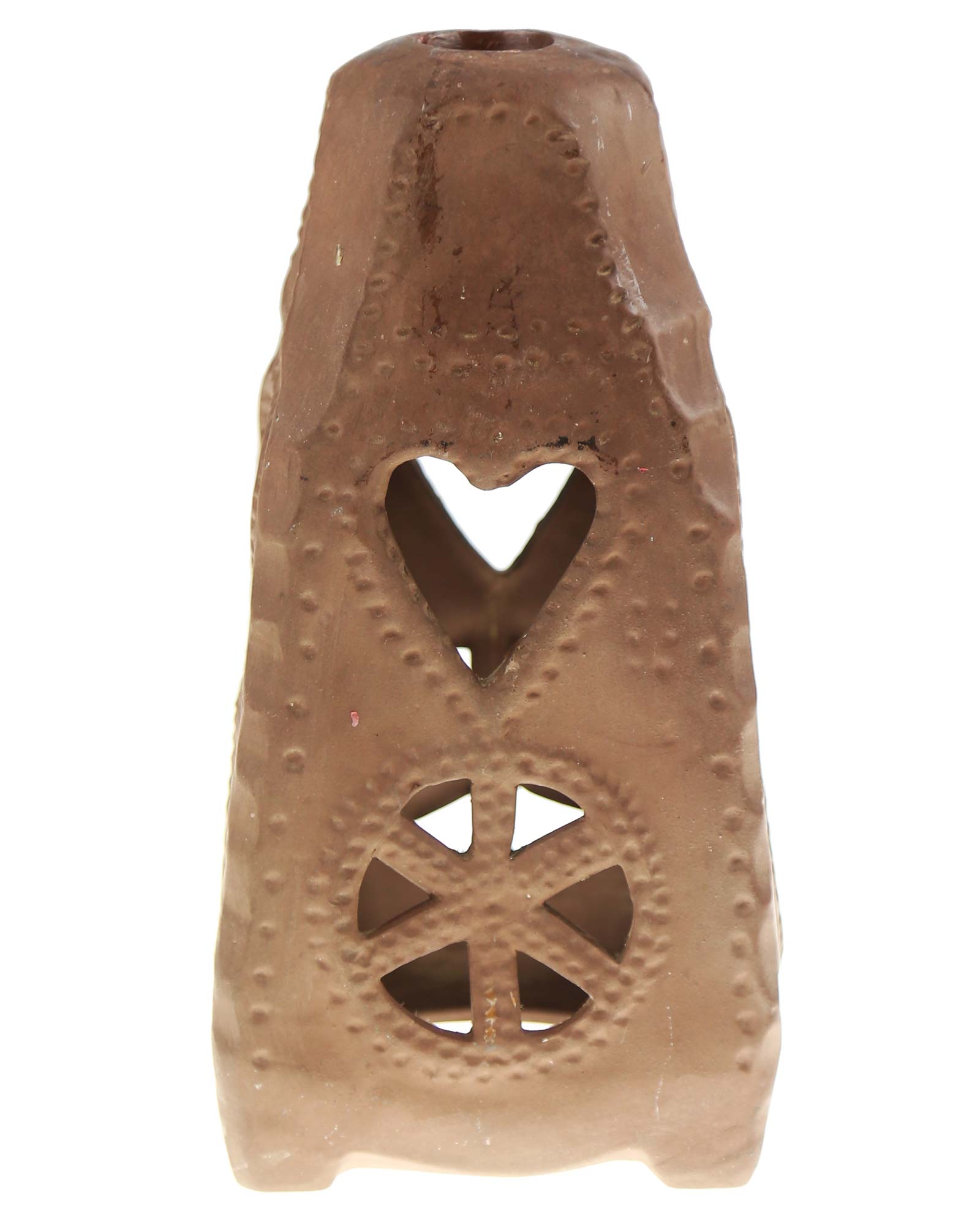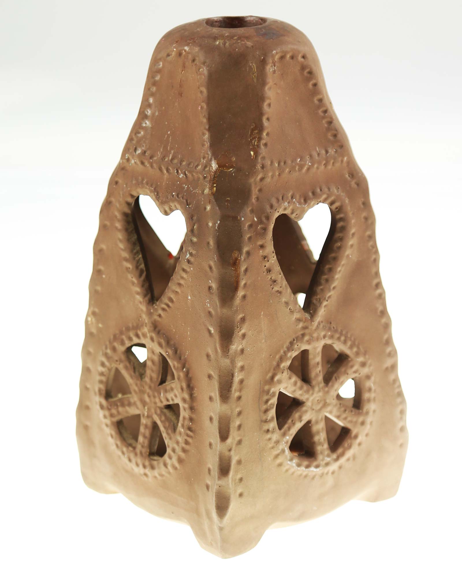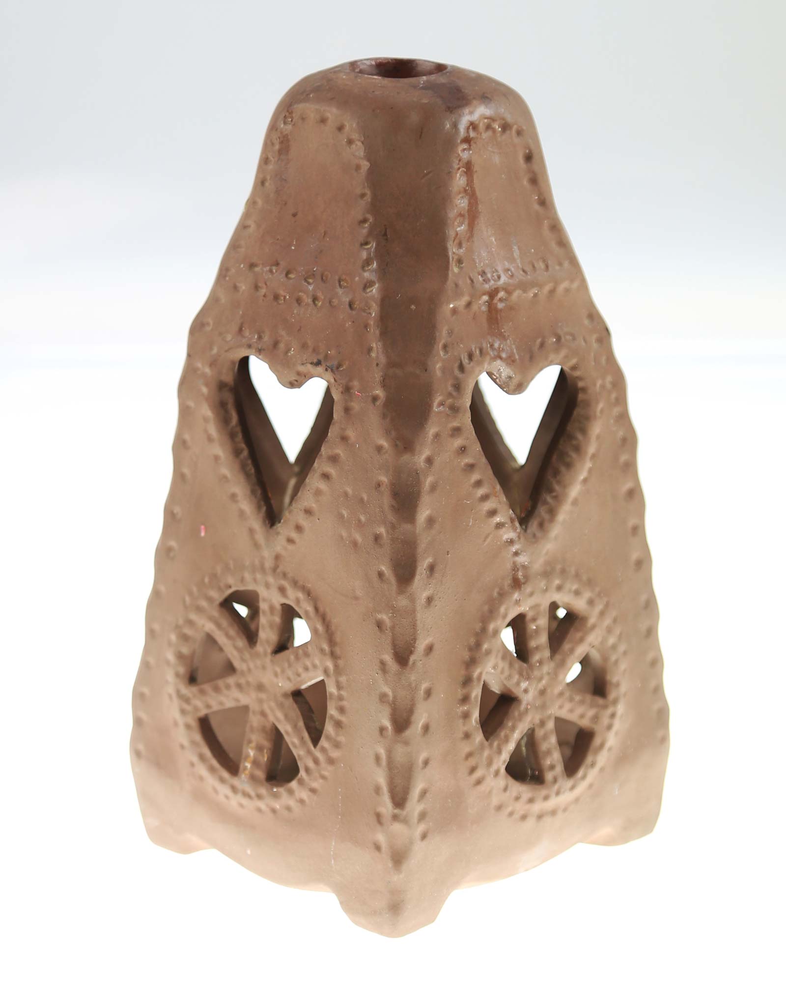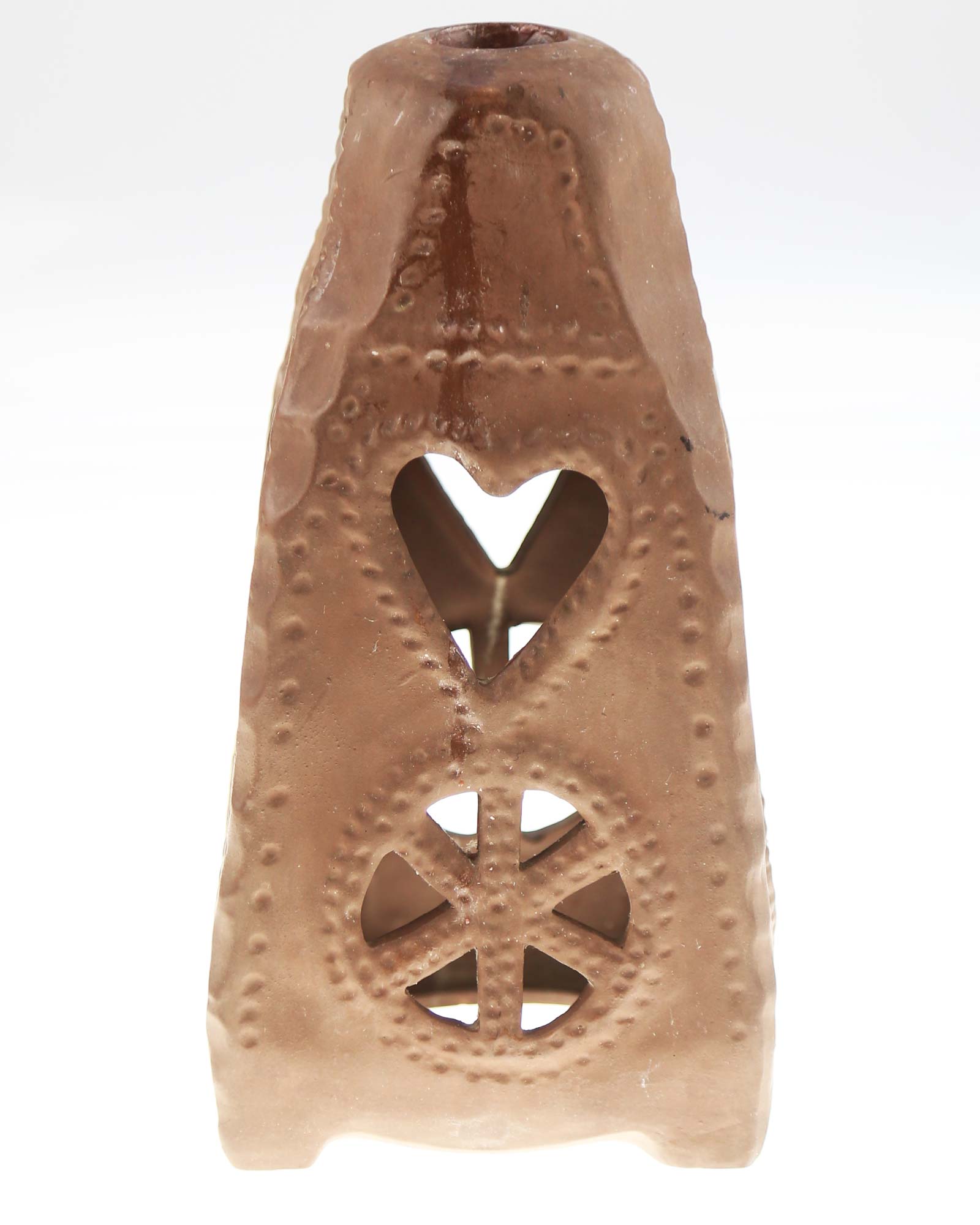 Наградной рождественский светильник SS Julleuchter, первый тип, от фирмы Allach. Наградной рождественский светильник Йоля, на лицевой стороне справа от сердца нанесены шесть точек (1936 год). Светильник конусообразной формы, внутри полый, основание опирается на ножки. Четыре стенки-грани украшены сквозными изображениями рунического солярного символа («колесо Йоля») и сердца (пра-символом Allmutter («сердце дома») . В верхней части подсвечник имеет углубление для крепления свечи. Ещё одна небольшая свеча может быть размещена внутри, во внутренней части подсвечника. Стиль исполнения подсвечника имитирует глиняное исполнение средневекового башенного светильника выполненного "в старой германской традиции". На ножке поставлено клеймо фабрики производителя в виде двух скрещенных рун (SS porcelainmanufactur Allach Munchen).